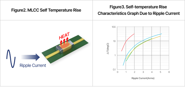 ▷ From a design perspective, when applying high-capacitance 100V MLCC to 48V input/output voltage circuits, the usage of Soft Termination to reduce mechanical stress is considered, as well as the evaluation of the Self-temperature Rise of the MLCC caused by high ripple currents. [Figure 2/3]